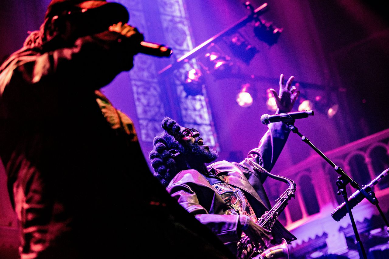 Op het podium begint de band aanvankelijk met een collectieve ademhalingsoefening in het donker waarbij het publiek de ogen mag sluiten. Niet helemaal wat je verwacht van een afro-punkcollectief. Maar eenmaal op stoom blijkt de band veel registers te kunnen bespelen.