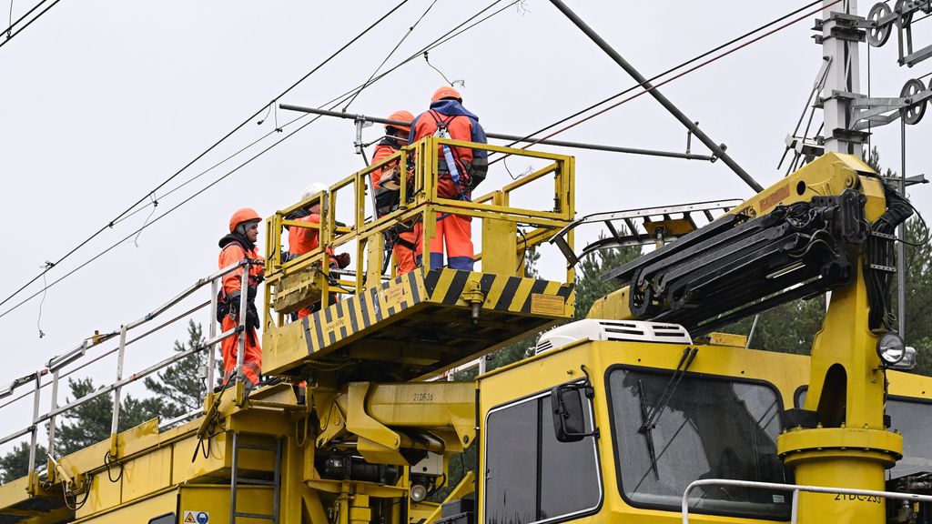 EPAPools spoorwegpersoneel repareert een beschadigde bovenleiding