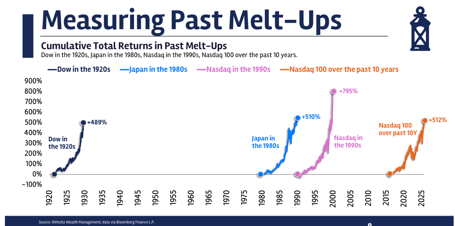 Niet schrikken. De bullmarkt in Amerikaanse techaandelen is nu al groter dan die van de Roaring Twenties in de VS en Japan in de jaren 80. Alleen tijdens de dotcomzeepbel stegen koersen nog meer. Hoe loopt dat af?