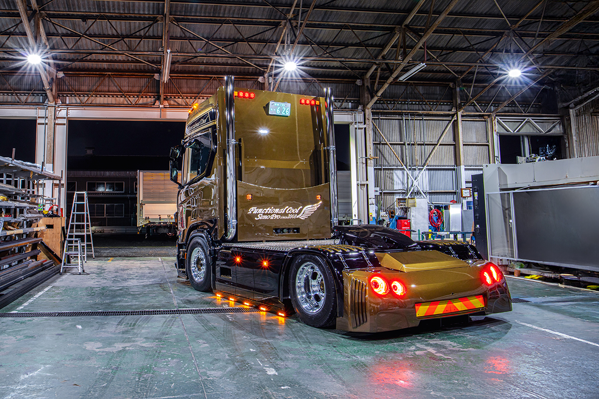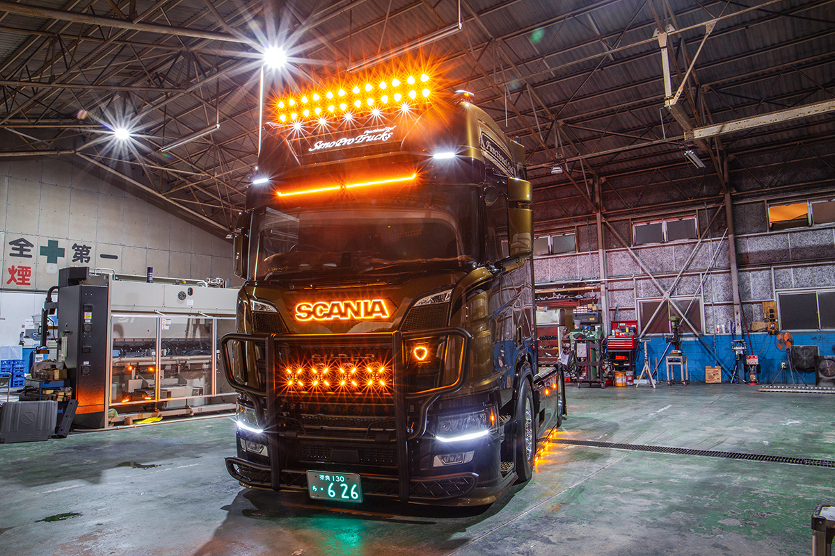 De Japanse truckbouwer Seno Pro heeft een nieuwe demotruck gepresenteerd: een volledig aangepakte Scania V8 Super 460R. Het voertuig combineert Europese truckstijl met Japanse ontwerpkenmerken en is voorzien van Nederlandse verlichting.