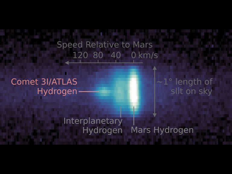“We hebben de instrumenten gepusht tot voorbij hun normale kunnen”, zei Fox. 3I/Atlas denderde vlak langs Mars, dus zijn veel nieuwe beelden afkomstig van satellieten rond die planeet. De Mars Reconnaissance Orbiter naderde het interstellaire object het dichtst en legde het vast vanaf 31 miljoen kilometer. Het leverde een wat wazige stip op, maar dat is ook precies wat je verwacht bij een komeet, geeft sterrenkundige Lucas Ellerbroek aan.