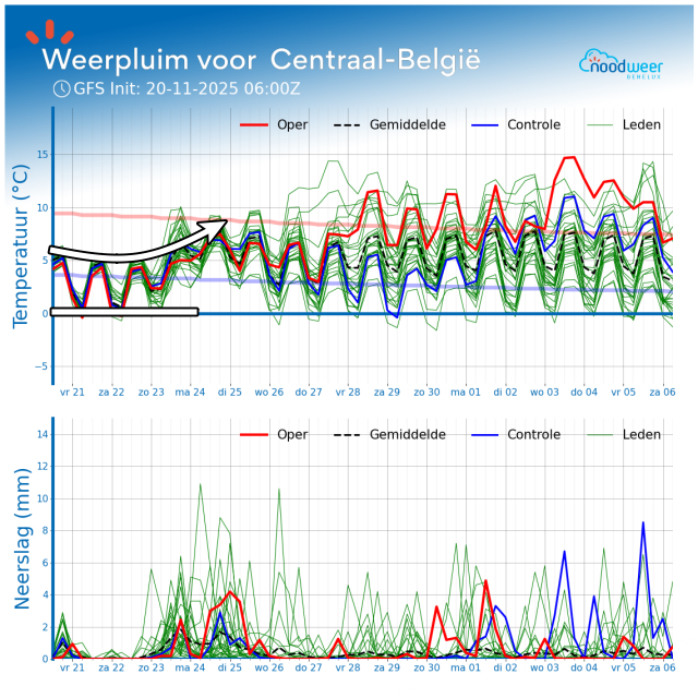 Vorig weekend kwam de verandering van het weerpatroon op gang. Zeer zacht novemberweer maakte plaats voor een noordelijke stroming, doordat er een rug werd opgeworpen op de Atlantische Oceaan. Hierdoor zakte er polaire lucht over de Benelux heen, waardoor het gevoelig kouder werd.