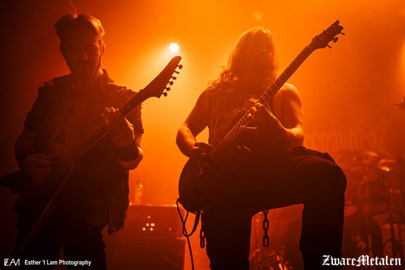Want dat doet Wiegedood: overrompelen. Het is vandaag opnieuw indrukwekkend wat er gebracht wordt. Zonder enig woord of interactie trapt de band af met het genadeloze Svanesang. Daar blijkt dat het geluid ontzettend hard staat, maar dat versterkt alleen maar de beleving en de indruk. Met name de drums klinken hard door. En dat is fijn, zo kun je horen hoe goed het drumspel van Wim Coppens is.