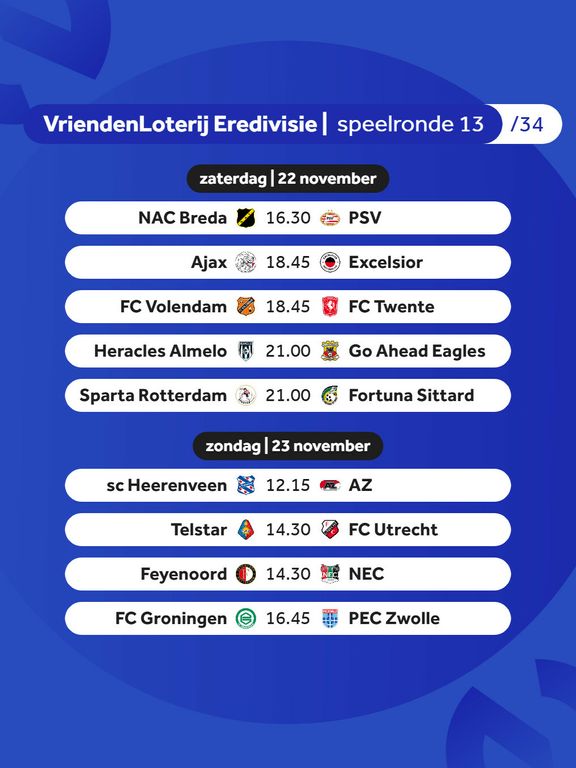 De wedstrijd tussen Feyenoord en NEC zondag om 14.30 uur is via een liveblog te volgen op NOS.nl en in de NOS-app en via Langs de Lijn op NPO Radio 1.