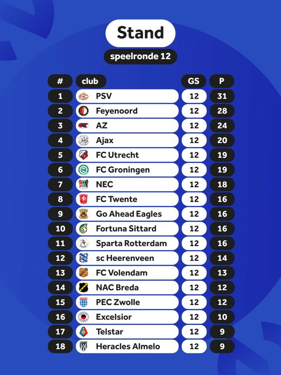 Naast de nieuwe blessuregevallen wist Van Persie te melden dat er ook weer wat spelers terugkeerden van een blessure. Zo sluit doelman Justin Bijlow zondag weer aan bij de selectie en is ook Jaden Slory op de weg terug. Jordan Bos, die een spierblessure overhield aan de topper tegen PSV, is nog niet fit, maar wel goed op weg.