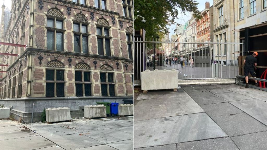 Een groep demonstranten forceerde zaterdag het toegangshek van de bouwplaats van het Binnenhof. Ze forceerden het hekwerk, beschadigden de bouwschutting en gooiden ruiten in.