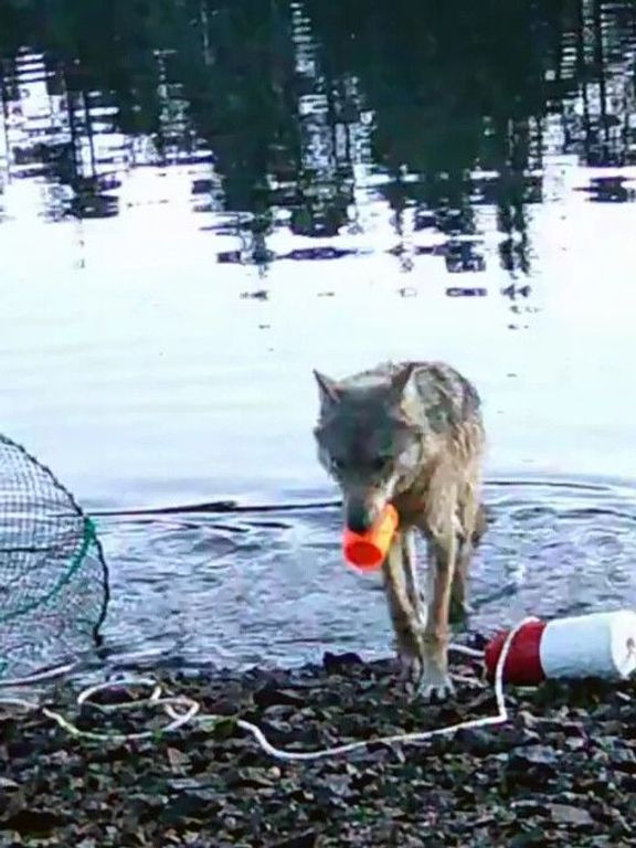 Wow: hongerige wolf gebruikt visnet om eten te stelen