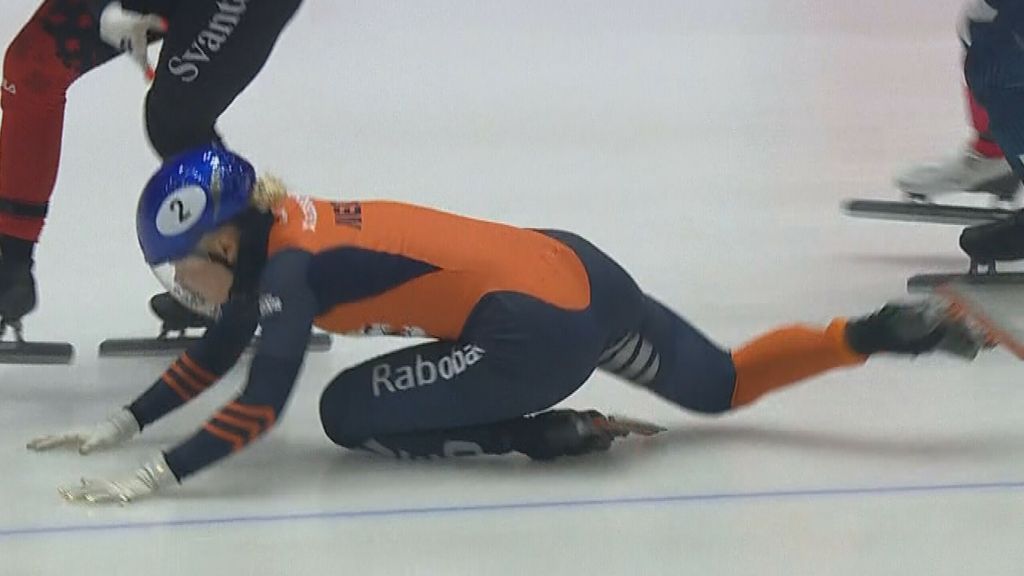 Toch lag ze plotseling op het ijs. “Ik moet iets meer ruimte nemen”, legde ze haar val uit, waarna ze ook direct relativeerde. “Het kan gewoon gebeuren. Ik ga hier niet nu de hele dag zuur rondlopen, maar het is wel erg jammer.”