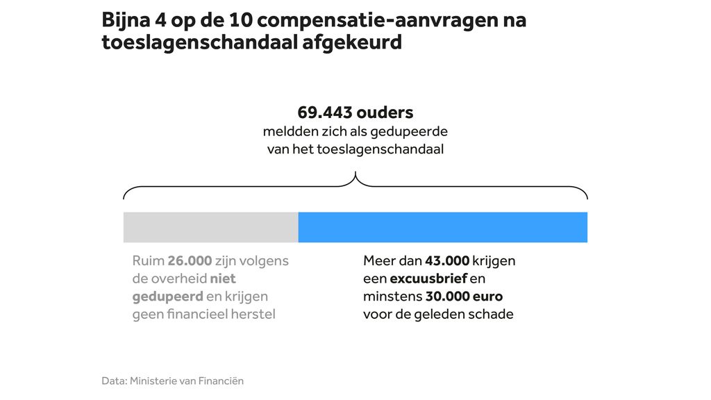 “Waar we nu nog voor staan, is de groep ouders compenseren voor wie deze compensatie niet toereikend is, bijvoorbeeld doordat zij hun baan of huis zijn verloren”, zegt een woordvoerder van het ministerie van Financiën.