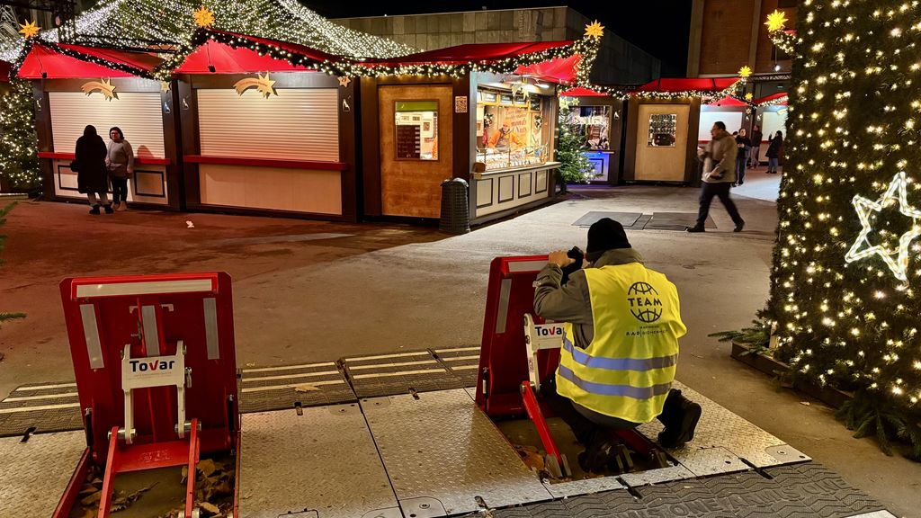 NOS / Chiem BaldukDeze wegversperring is inklapbaar als hulpdiensten of leveranciers de kerstmarkt op moeten rijden