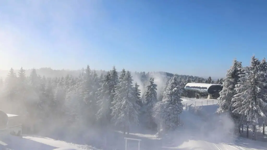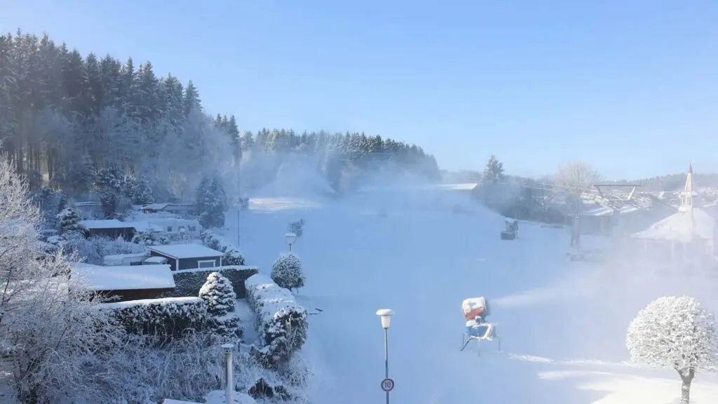 Niet alleen in de Alpen lijkt het momenteel hartje winter, ook dichter bij huis in het Sauerland is het een prachtige winterdag. De afgelopen dagen is ook hier verse sneeuw gevallen en vandaag breekt de zon door. Gelukkig zijn de temperaturen nog laag, waardoor de sneeuwkanonnen nog lekker blijven blazen. Het seizoen begint hier al over een week!