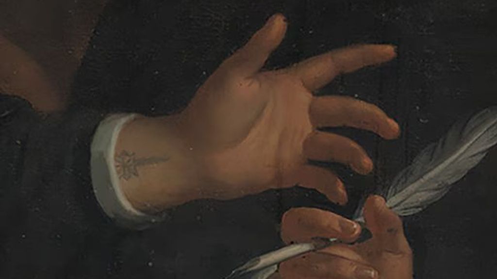 Al 351 jaar recht in het midden van een museumstuk, en toch nu pas ontdekt: een unieke tatoeage op een groepsportret uit de 17e eeuw. Het Amsterdam Museum denkt hiermee de oudste afbeelding van een tatoeage op een Nederlands schilderij in handen te hebben, uit een tijd dat een dergelijke lichaamsversiering nog taboe was.