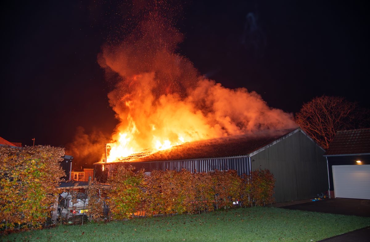 GORINCHEM – In een grote schuur aan de Haarweg in Gorinchem is in de nacht van maandag 24 op dinsdag 25 november 2025 een grote brand uitgebroken. De brand werd rond 02.00 uur ontdekt en was al snel uitslaand. De brandweer schaalde op naar ‘zeer grote brand’ en kwam met veel eenheden ter plaatse.