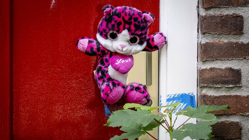 ANPEen knuffel hangt aan de voordeur van het huis waar het pleegmeisje woonde