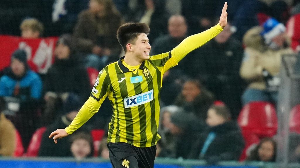 EPAHet grote talent van Kazachstan, Dastan Satapjev, viert zijn eerste Champions League-treffer.