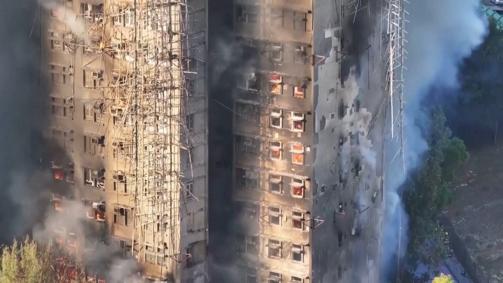 In Hongkong zijn brandweerlieden nog steeds bezig met het blussen van de wolkenkrabbers waar gisteren brand uitbrak. Drie mensen zijn gearresteerd op verdenking van grove nalatigheid. Het zijn leidinggevenden bij het aannemersbedrijf dat verantwoordelijk was voor de renovatie van de woontorens.