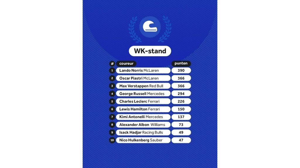 Na het schrappen van de punten van beide McLarens zondagavond, ziet Norris zijn teamgenoot Piastri en Verstappen nu als even grote bedreigingen in de strijd om het kampioenschap. “Beiden zijn voor mij hetzelfde, ik denk dat ze even goed zijn. Oscar kan precies hetzelfde als Max”, aldus Norris.