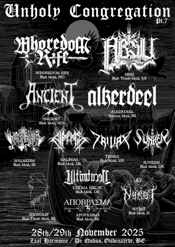 Op vrijdag 28 en zaterdag 29 november voltrekt zich in Oudenaarde voor de zevende maal de onheilige eucharistie van Unholy Congregation, een kleinschalig festival dat sinds 2018 is uitgegroeid tot dé place to be in België voor de blackmetalliefhebber die durft af te wijken van de platgetreden paden. Wie zich niet blindstaart op grote of populaire namen, maar wel kwaliteit verwacht op het podium, zal op Unholy Congregation een uiteenlopend aanbod aan binnenlandse én buitenlandse bands vinden en connectie kunnen maken met het échte kloppende hart van de huidige blackmetalscene. Het festival brengt een evenwichtige mix van oud en jong geweld en slaagt er elk jaar in om uit te pakken met een aantal exclusieve shows, waaronder een aantal optredens van bands die speciaal voor het festival naar ons land is komen overvliegen. Een unieke ervaring gegarandeerd. Aangezien we bij Zware Metalen oprecht fan zijn van het concept achter Unholy Congregation werd het dan ook hoog tijd voor een interview met Filip, oprichter en bezieler van het zwartste feestje van het jaar.