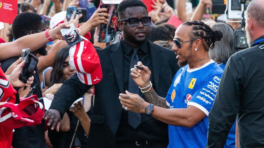 EPAHamilton deelt handtekeningen uit aan de tifosi in Milaan voor de GP van Italië in Monza