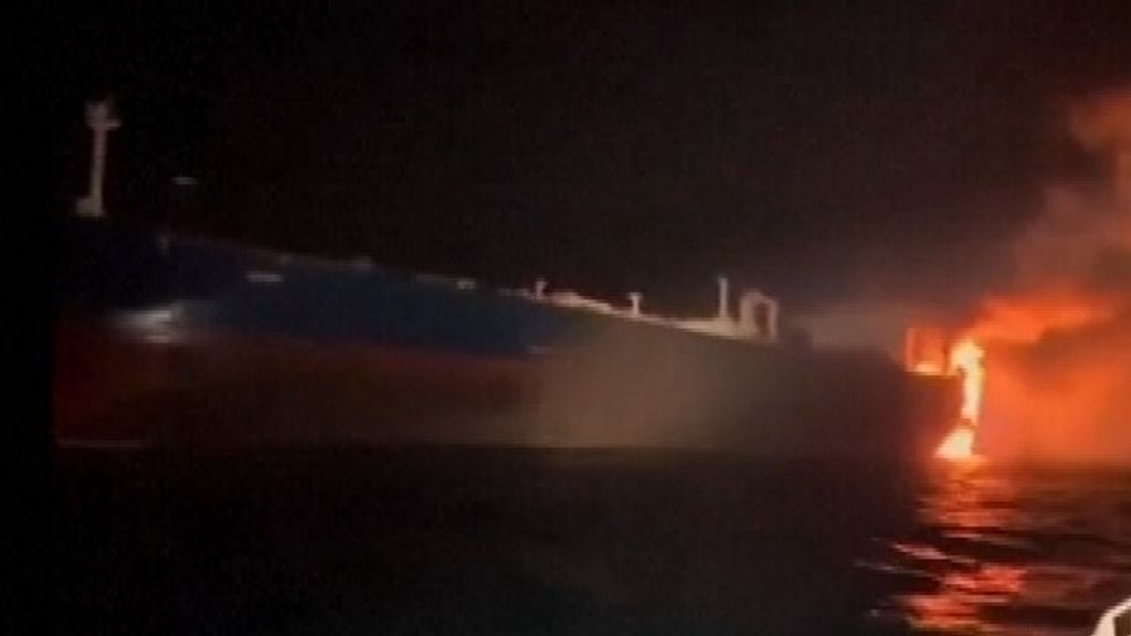 Olietankers in brand