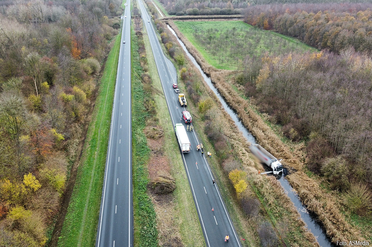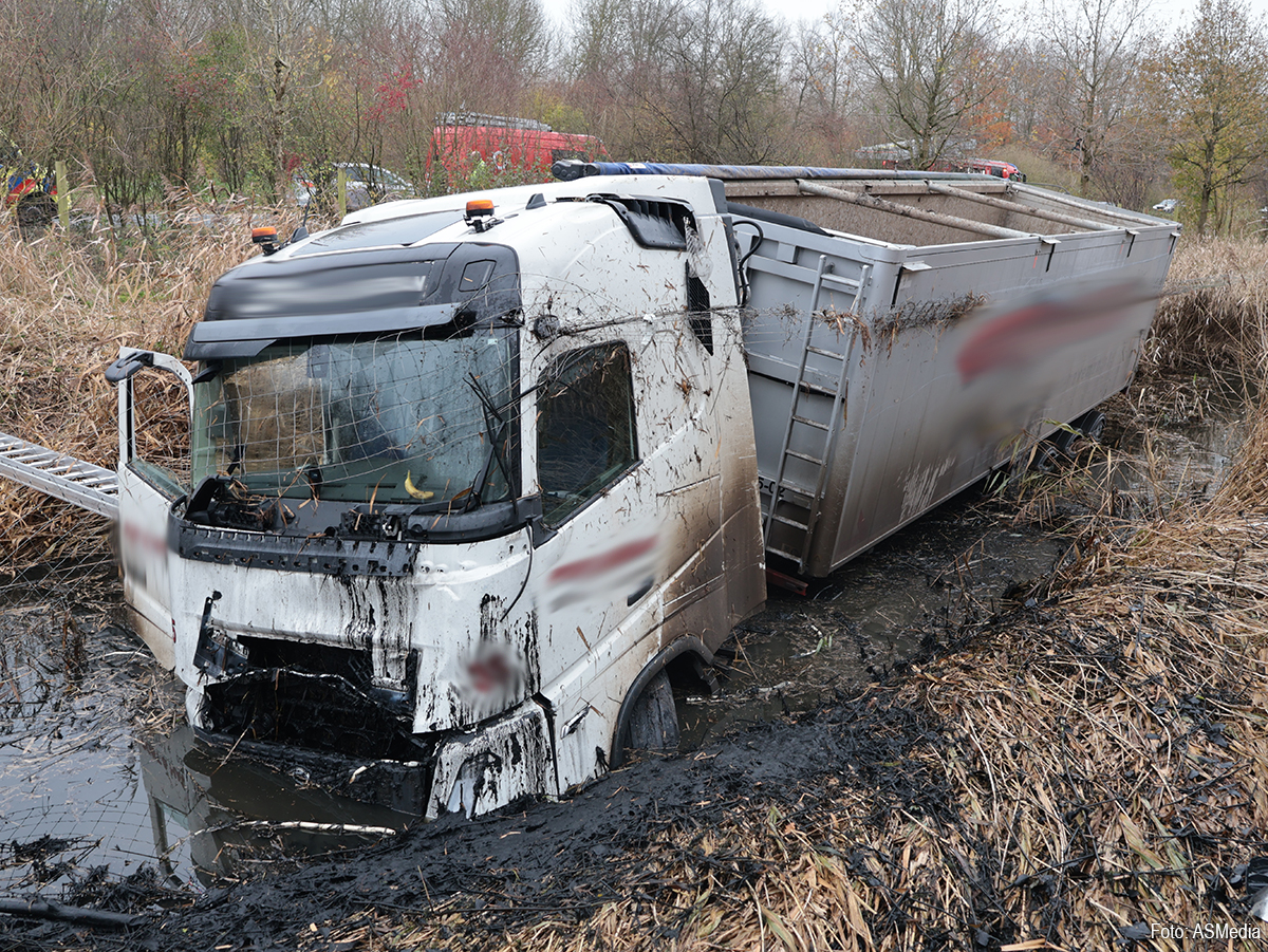 ZEEWOLDE – Langs de Gooiseweg (N305) bij Zeewolde is zaterdagochtend iets voor 09.50 uur een vrachtwagen in de sloot terechtgekomen. Het incident gebeurde ter hoogte van hectometerpaal 28,1.