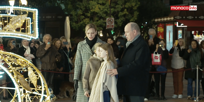 De gemeente Monaco organiseerde de kerstverlichting op de Place d’Armes in Monaco. Prinses Gabriella en prins Jacques mochten de verlichting aansteken, in aanwezigheid van ouders, prins Albert en prinses Charlène. We zien Jacques en Gabriella zowaar een keer in een spijkerbroek. Het vest van Jacques komt dan wel weer van Emporio Armani, terwijl Gabriella’s cape afkomstig is van Fendi (trui van Chloé).