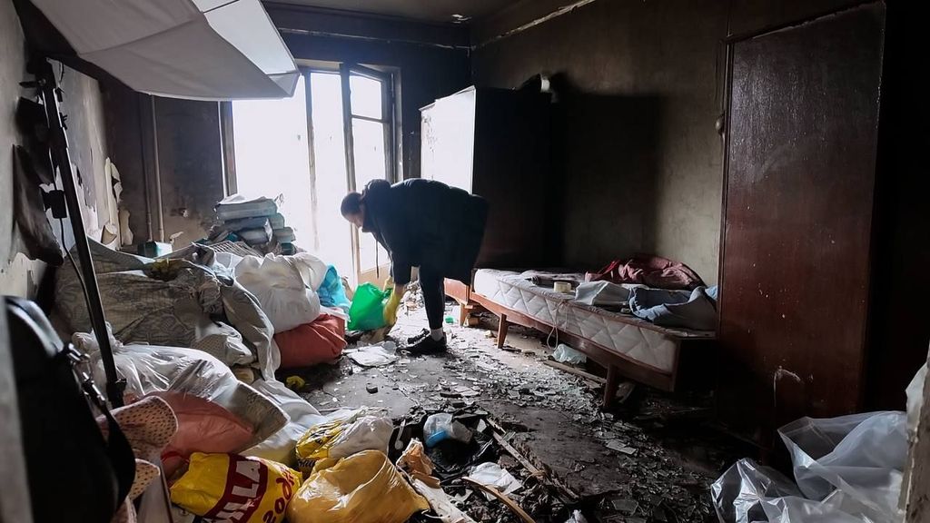NOSIrina ruimt haar grotendeels verwoeste appartement op