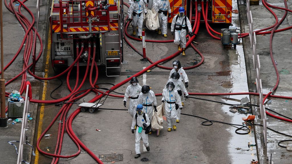 Rouwen en bergen lichamen bij uitgebrande flats in Hongkong