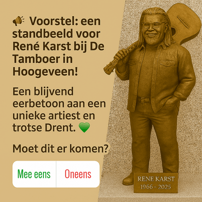 De oprichters van de petitie verzoeken de gemeente Hoogeveen om een standbeeld van René Karst te plaatsen op de locatie vóór De Tamboer, als erkenning voor zijn grote betekenis voor Hoogeveen, Drenthe en de Nederlandse muziek.