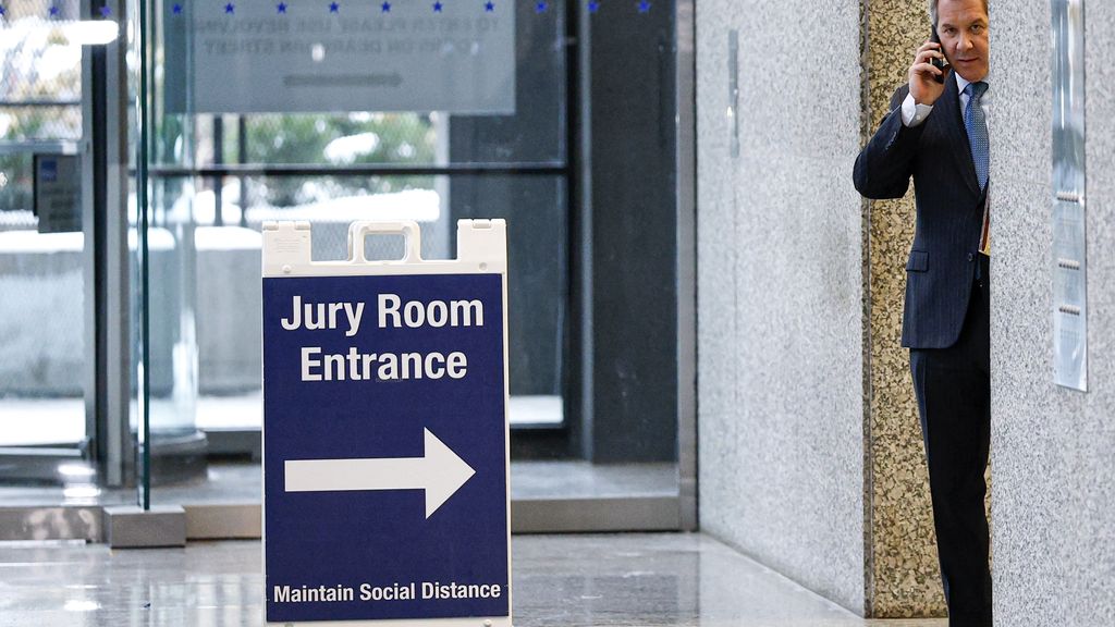 AFPJoaquin Guzman Lopez’ advocaat telefoneert in de rechtbank in Chicago