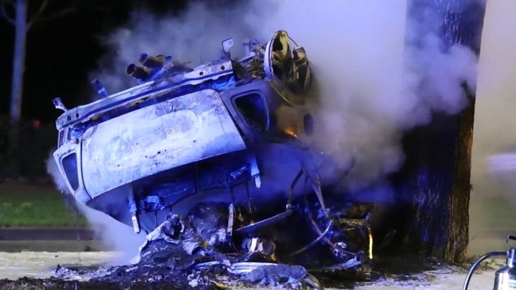 De auto sloeg over de kop en belandde tegen een boom. Onder meer brandweer, enkele ambulances en een traumahelikopter kwamen ter plaatse. Een van de inzittenden kon uit het brandende voertuig worden gered en ligt met onbekende verwondingen in het ziekenhuis.