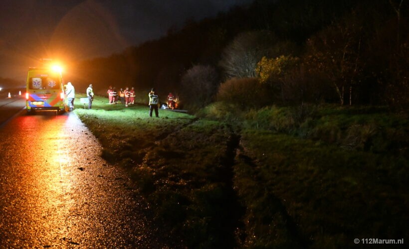 Bij een eenzijdig ongeval op de A7 ter hoogte van Marum is vanmorgen even voor zeven uur een auto te water geraakt.