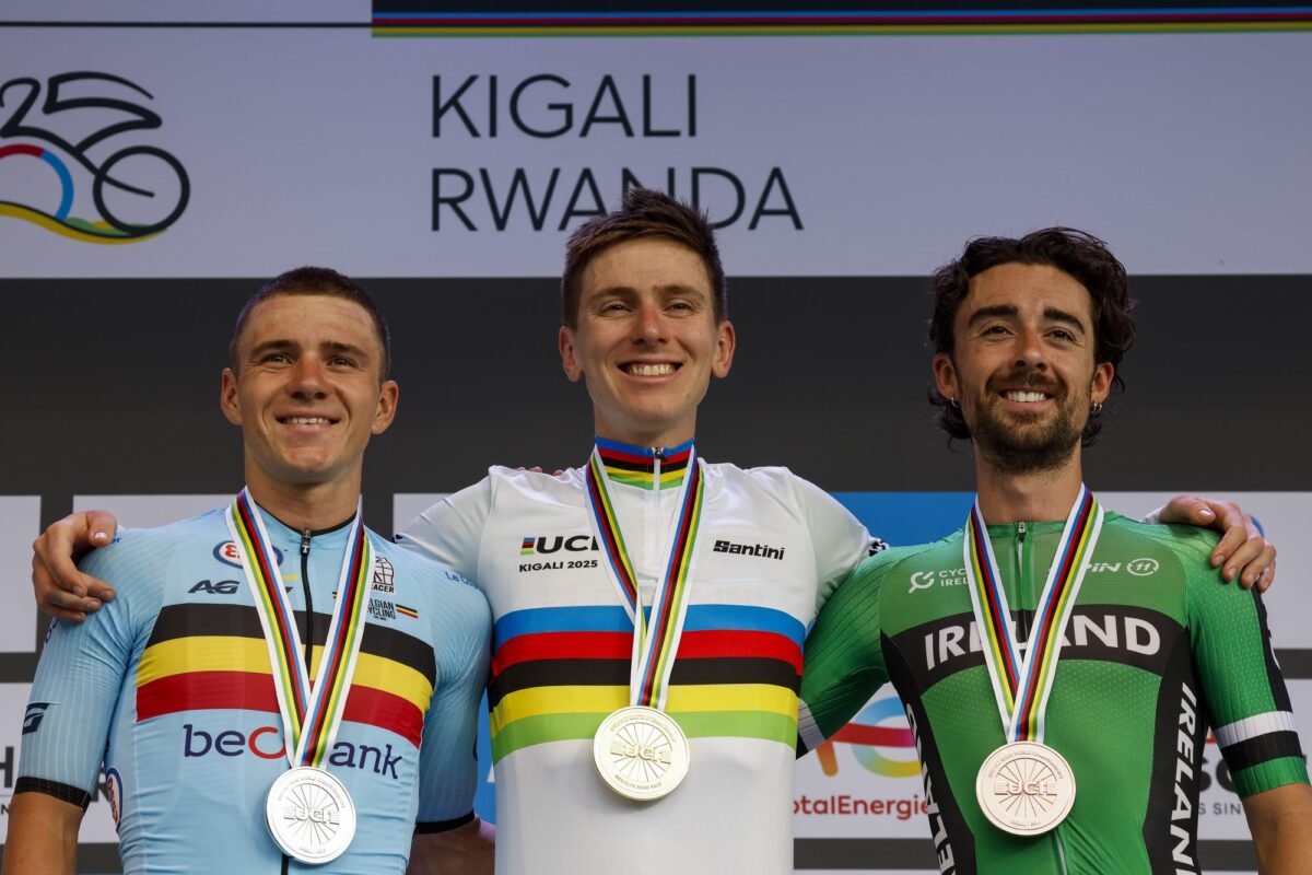 Drie UAE Emirates-XRG-renners kwamen van voren. De vrienden Pogacar en Isaac Del Toro en UAE-dissonant Juan Ayuso. Al gold voor de Spanjaard enkele kilometers verderop op de Muur van Kigali de zogenaamde wet van dit WK in Rwanda: ‘Je hebt maar één pijl op je boog.’