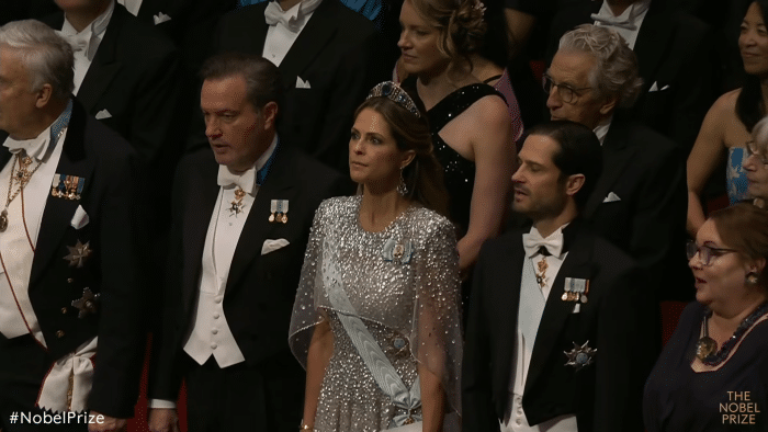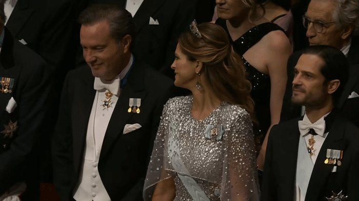 In Zweden zijn de Nobelprijsuitreikingen van start gegaan, en zoals gebruikelijk, is het weer volop glitter en glamour. Naast koning Carl Gustaf en koningin Silvia, zijn kroonprinses Victoria en prins Daniel, evenals prins Carl Philip, prinses Madeleine en Chris O’Neill aanwezig.