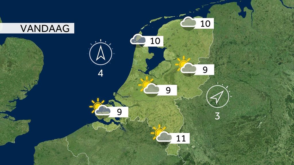 Eerst het weer: vanochtend is het bewolkt en regionaal nevelig. Later op de dag breekt in het binnenland de zon af en toe door. Het blijft droog en bij een matige zuidenwind wordt het 9 tot 11 graden.