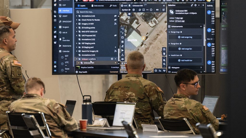 AFPMilitairen bij het Civil-Military Coordination Centre in Israël, waar de VS, Israël en bondgenoten hulp coördineren en werken aan een toekomstplan voor Gaza