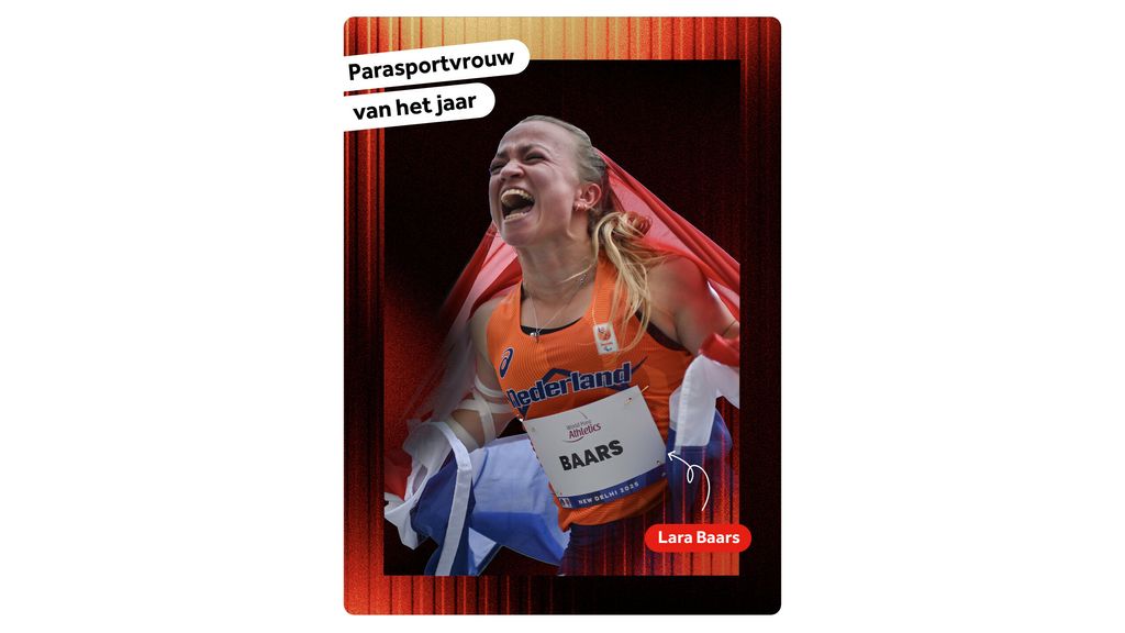 Eerder op de avond ging de award voor Parasportvrouw van het jaar ook naar een kogelstootster: Lara Baars. De 28-jarige Groesbeekse ontving de prijs voor haar gouden worp op de WK in New Delhi, waar ze de kogel 9,77 meter ver stootte in de F40-klasse (voor atleten met een groeistoornis) en met dat wereldrecord de titel veroverde.
