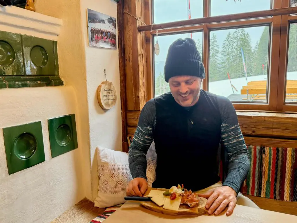 Genieten in de zon op het terras vandaag!De pistes zijn wit, maar de zuidhellingen zijn groen.Goed drinken tijdens het sporten is belangrijk!Dit is de dalafdaling in Westendorf, die er nog goed bij ligt.SkiWelt is bekend om z’n gezellige authentieke huttenWij aten in de knusse Frankalm, een leuke tent met ontzettend aardige gastheer.