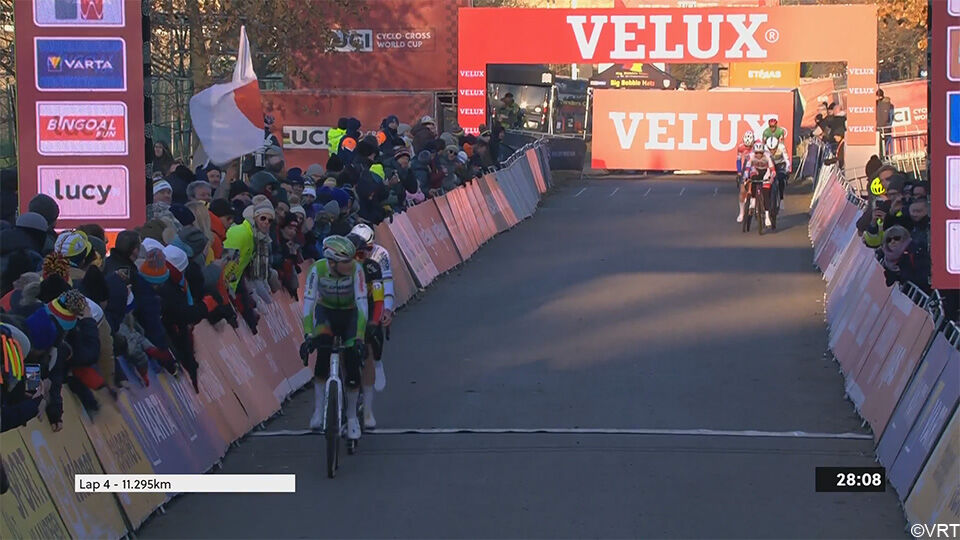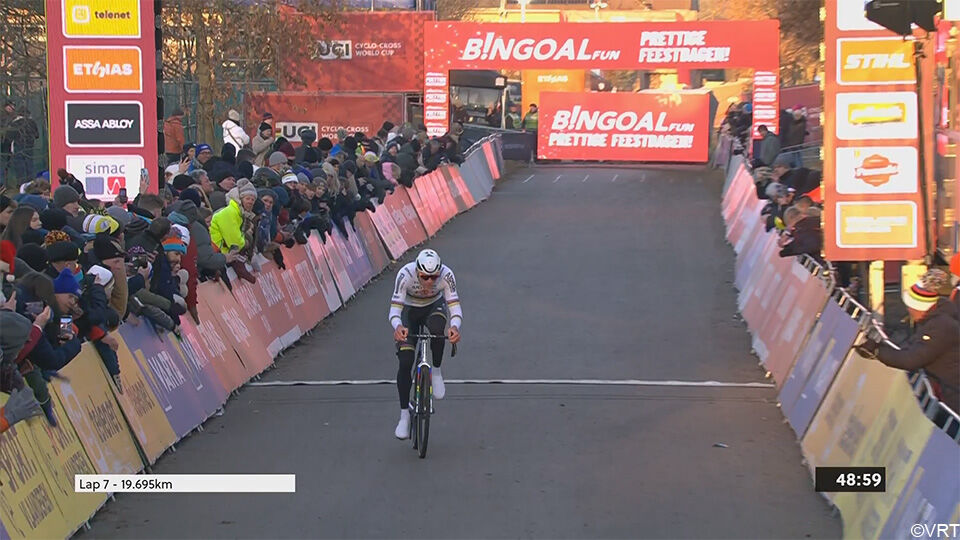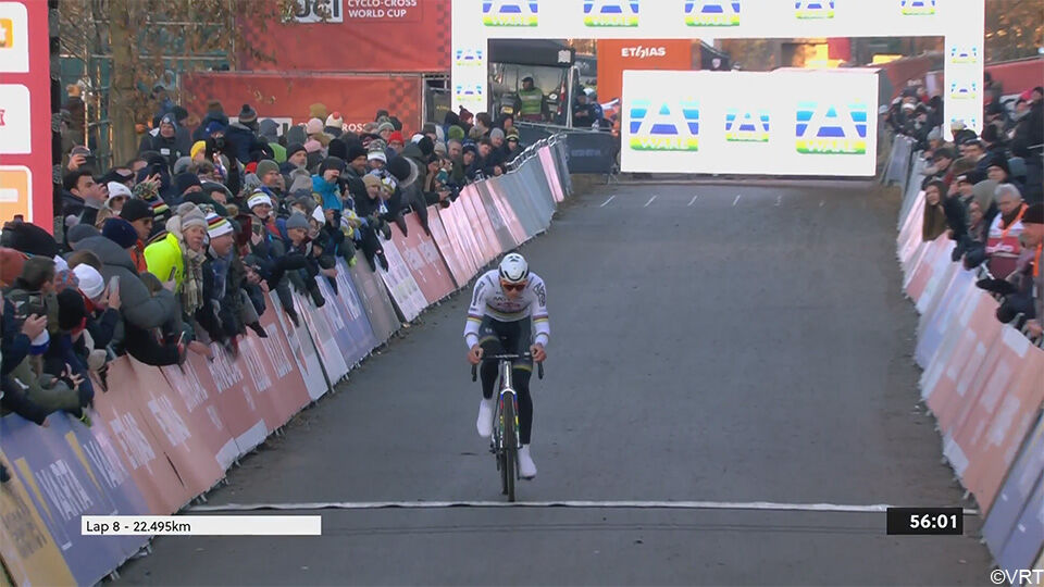 De spanning was eenklaps weg. Van der Poel keek niet meer achterom en knalde naar zijn 5e opeenvolgende zege dit seizoen – zijn 4e al in deze Wereldbeker.