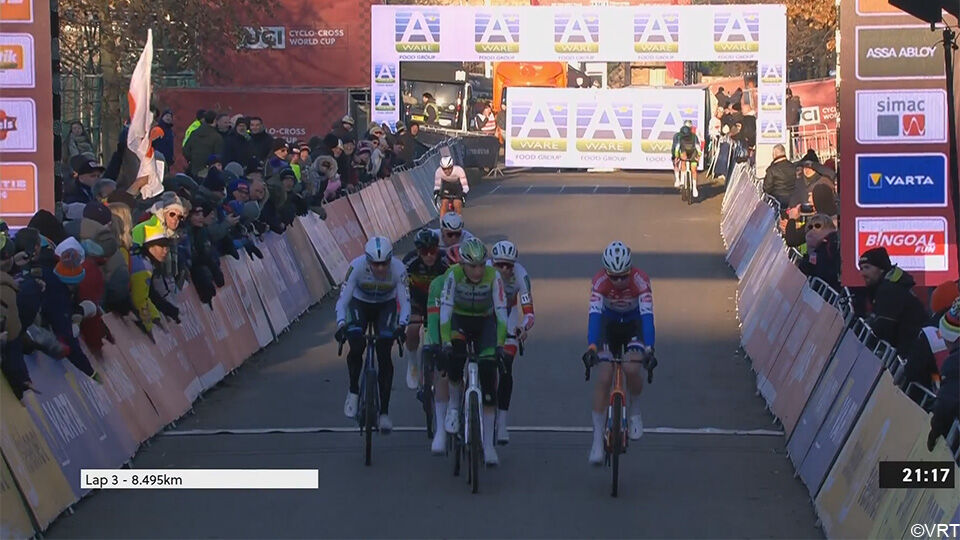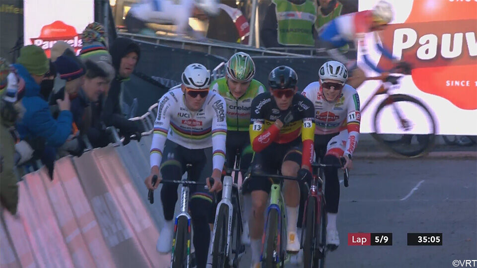 Aerts, Del Grosso, Verstrynge en Vanthourenhout volgen aan de finish op 8 seconden. Van der Poel heeft overgenomen bij Nys. Is het nu zijn beurt om Nys onder druk te zetten?