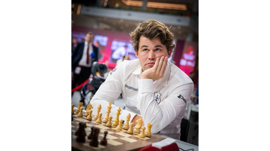 Nadat Carlsen zondag al voor de zesde keer de wereldtitel rapid had gewonnen, ging het maandag in het nóg snellere blitz niet vanzelf. Hij speelde veel remise, onder anderen tegen de sterk gestarte Nederlander Jorden van Foreest, en oogde onrustig op andere momenten. Zoals in de partij tegen Arjun Erigaisi.