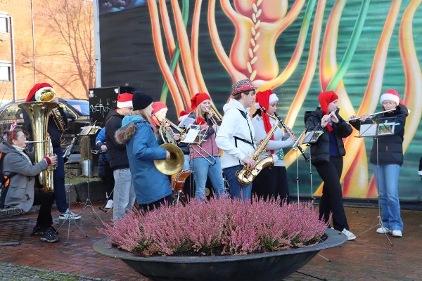 Korpsmusikantene skapte julestemning i gata.