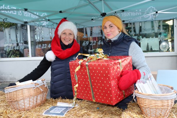 På stand for Eidsberg og Marker Sparebank sto Marie Vikeby og Christina Dahl med en stor julegave de ønsket at publikum skulle tippe innholdet av. Vikeby sier at det er viktig for dem å stille opp på slike arrangement, spesielt etter at banken ble fusjonert.