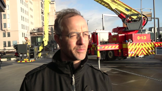 Nokon som tok ei øving på alvor, var NRK sin reporter då han klatra ned brannstigen.