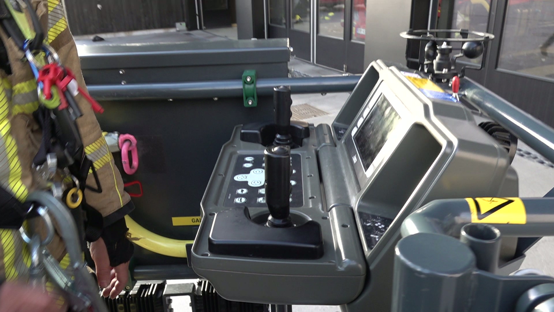 NRK sin reporter fekk teste den 32 meter høge stigen til brannvesenet. Godt sikra blei det ein luftig tur ned stigen.