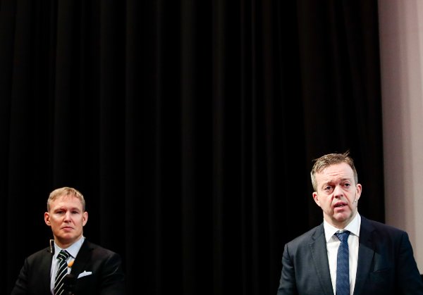 Alf-Helge Aarskog (t.h.), her sammen med Ivan Vindheim fra tiden de var henholdsvis adminsitrerende direktør og CFO i Mowi.