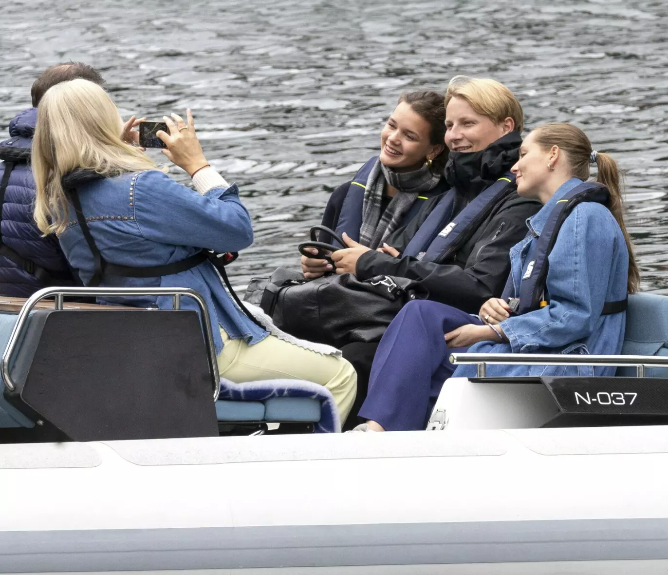 SMIIIL: Kronprinsesse Mette-Marit sørget for å ta bilde av barna sine og sønnens kjæreste