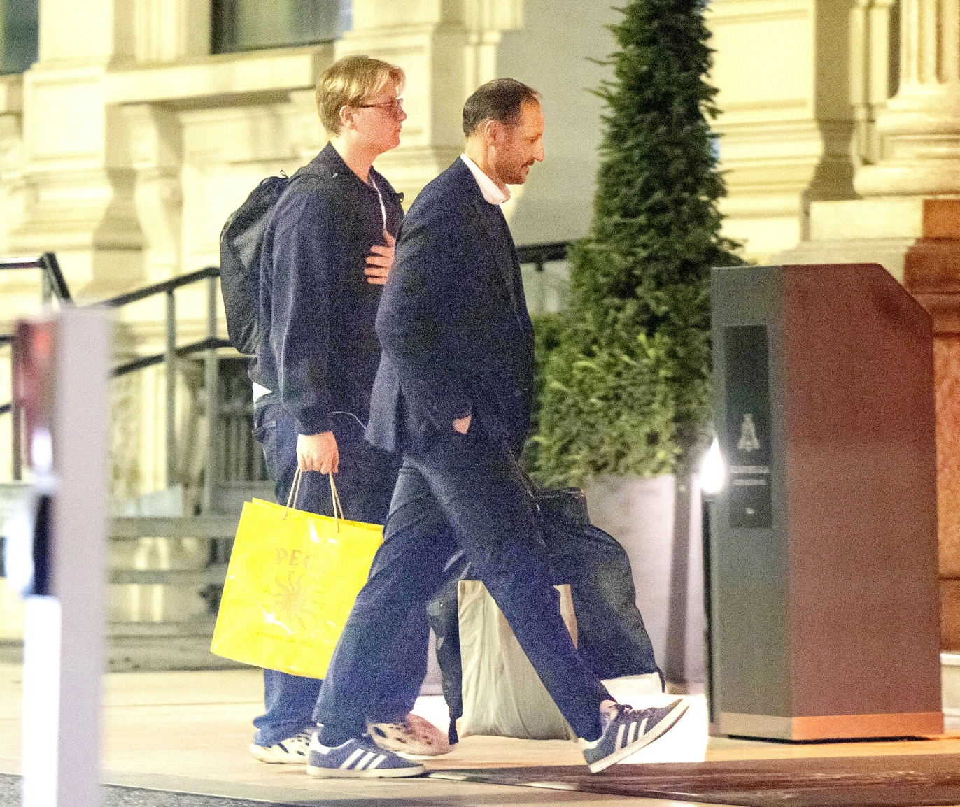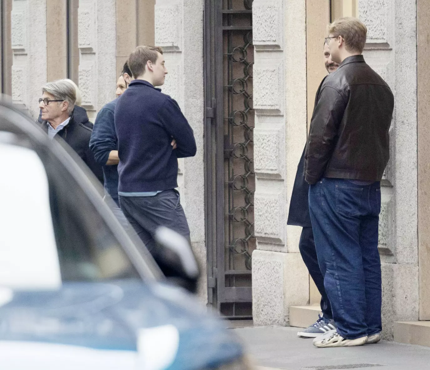 er han og pappa Haakon i avslappende prat i Milanos gater. Foto: MEGA