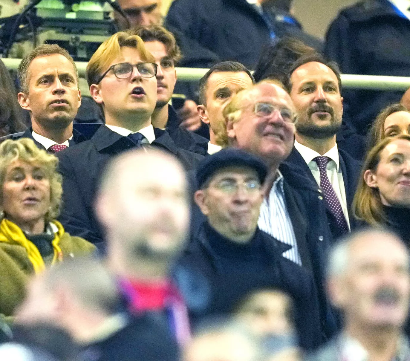 Selv om bruddet kanskje la en demper på stemningen, heiet prins Sverre Magnus sammen med kronprins Haakon. Og da seieren var sikret, jublet de sammen med spillerne i garderoben.