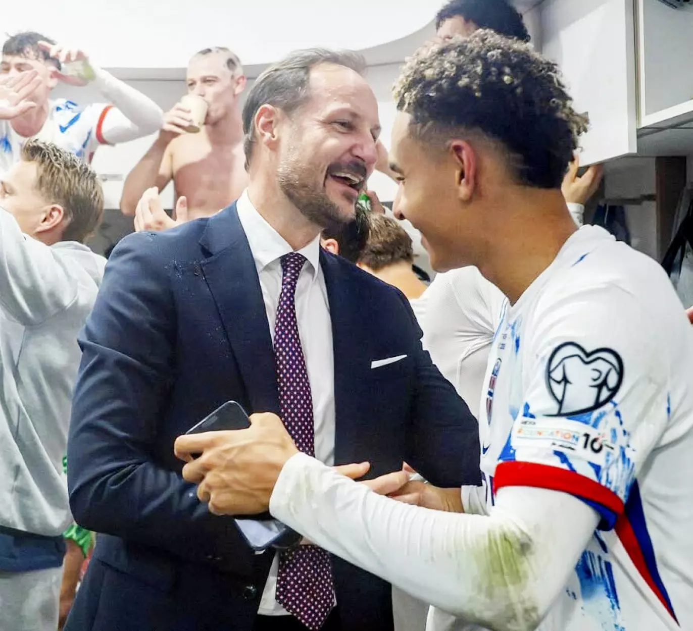 – De fikk nok litt pils på seg, så jeg tror nok dressen til kronprinsen må på rens etterpå, konstaterte en av Norges målkonger, Alexander Sørloth (29), lattermildt.